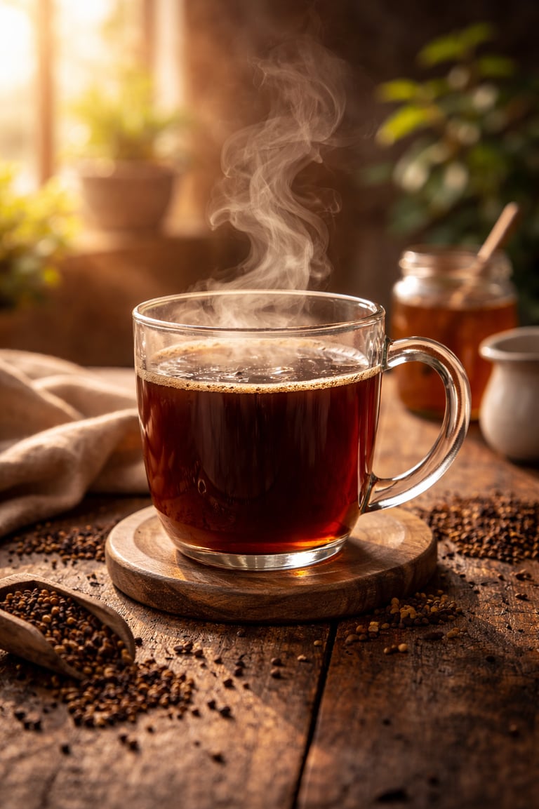 A roasted botanical drink crafted to bring warmth and depth without coffee or caffeine.